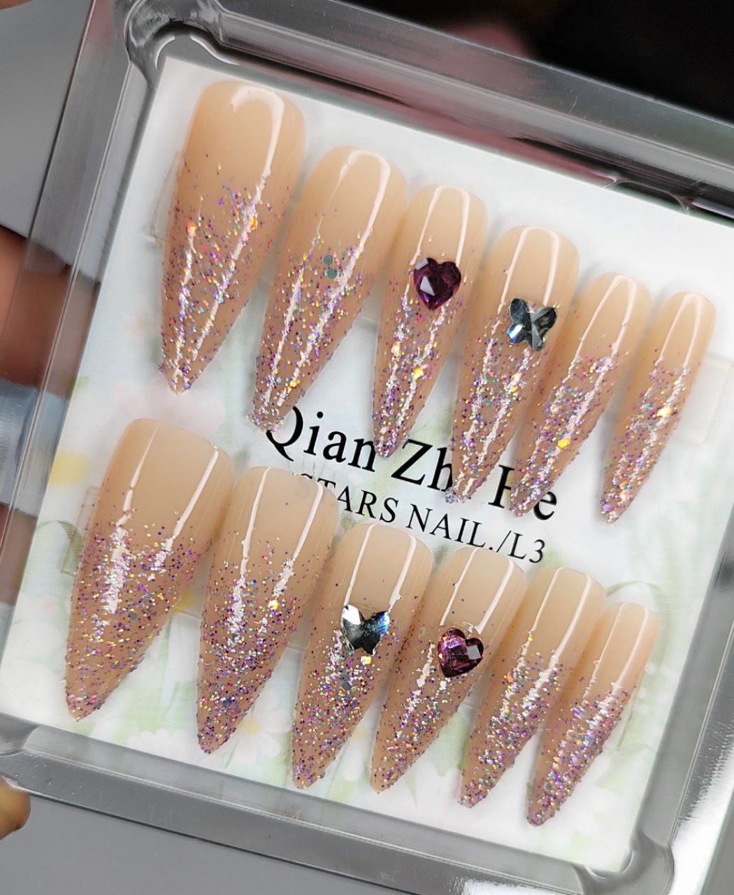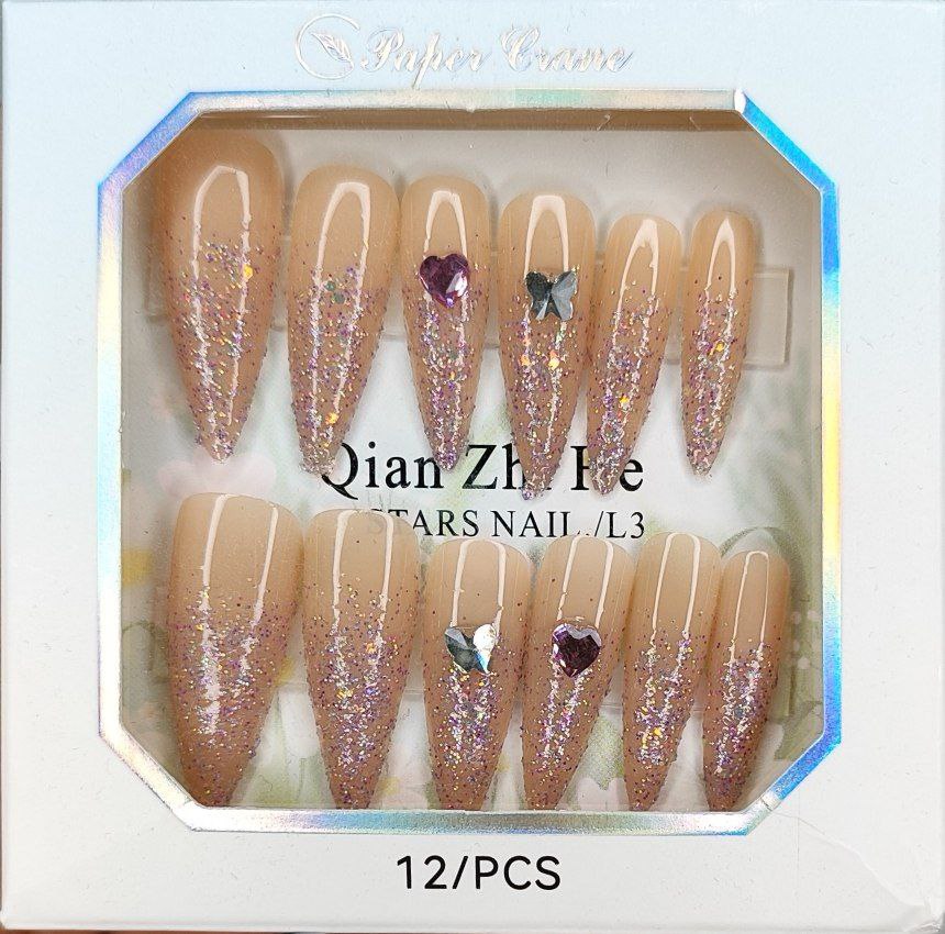 ناخن مصنوعی از برند Qian Zhi He به همراه چسب ژله ای